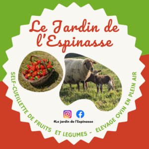 Le Jardin de L'Espinasse est une ferme en polyculture élevage sur la commune de Oyré. Nous nous occupons d'un élevage ovin et d'un self cueillette de petits fruits (fraises, cassis, mûres, framboises) et légumes d'été.Nous, c’est Gaël et Léa. Depuis 2022, nous avons repris une exploitation agricole sur la commune Oyré. Nous y cultivons des petits fruits et légumes d’été en self cueillette et élevons des ovins tout en extérieur, nourris uniquement à l’herbe.